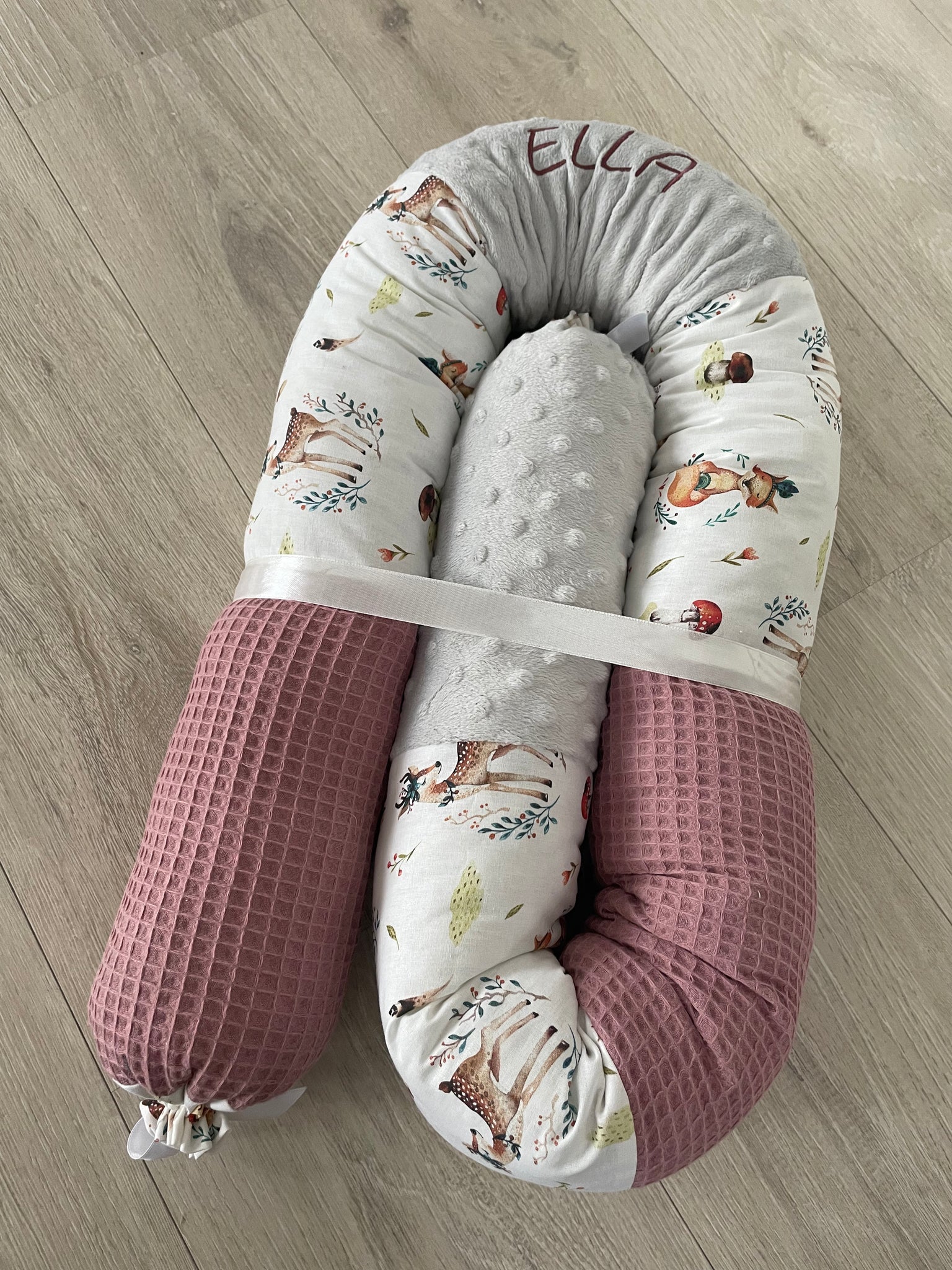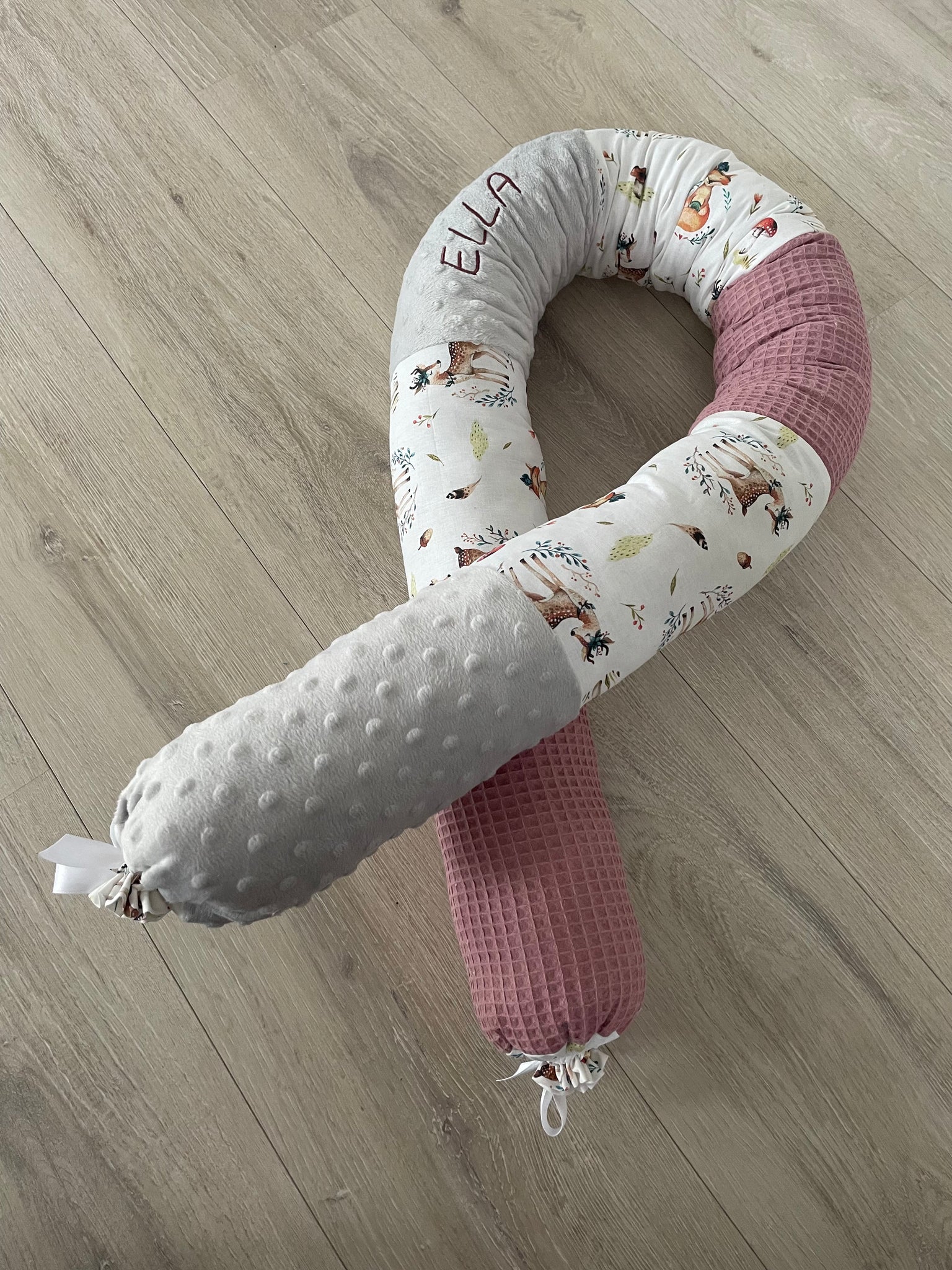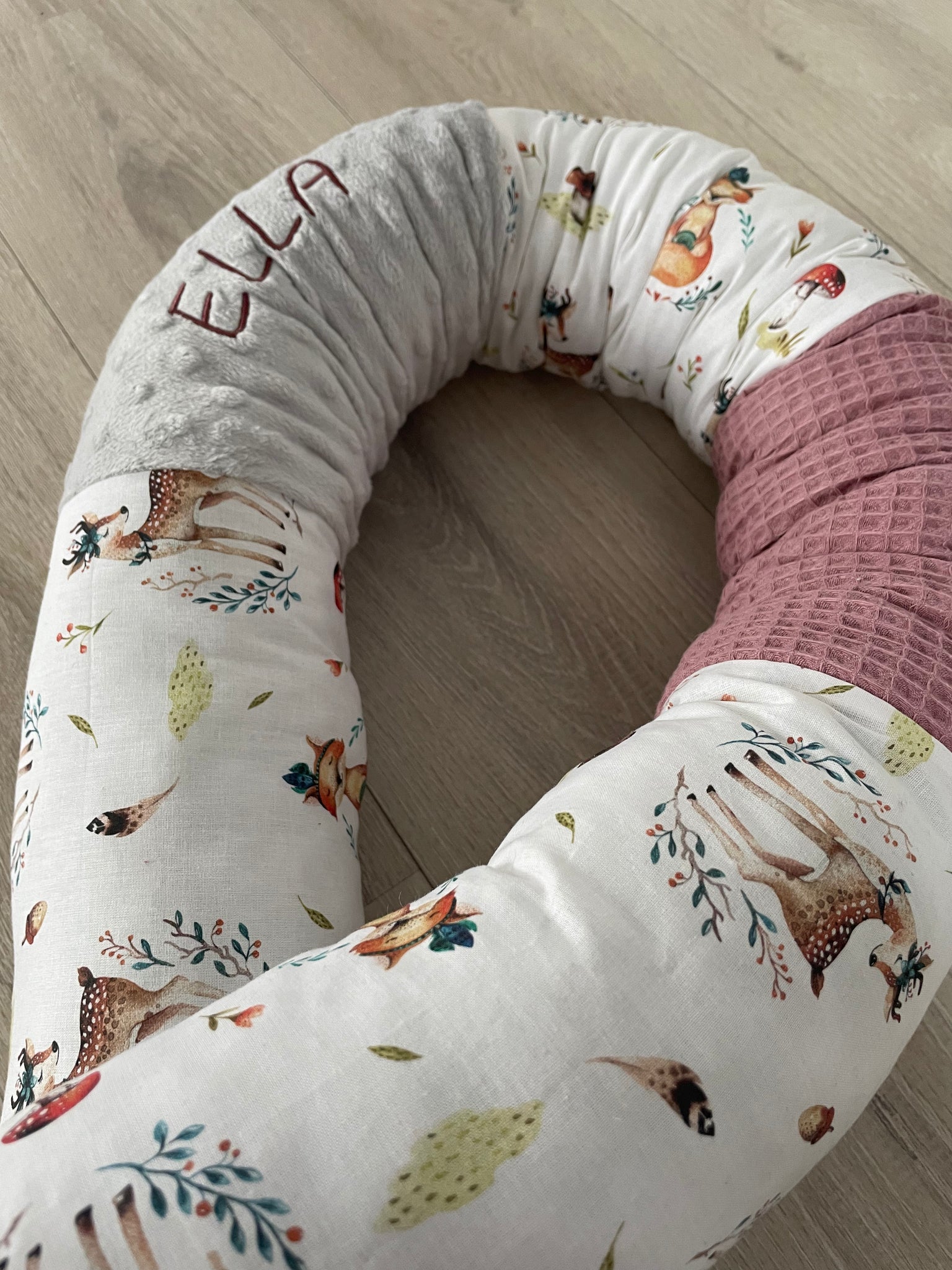 Die Bett- oder Kinderwagenschlange soll den Kleinsten Geborgenheit und Schutz vor Stößen am Bettgitter bieten.